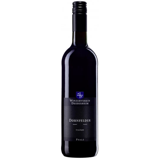 Dornfelder: bei dieser Traubensorte handelt es sich um eine Neuzüchtung aus der Kreuzung Helfensteiner x Heroldrebe, die 1955 von August Herold an der Staatlichen Lehr- und Versuchsanstalt für Wein- und Obstbau in Weinsberg durchgeführt wurde. Der Dornfelder hat in den letzten 20 Jahren eine rasante Verbreitung vorwiegend in Rheinland-Pfalz erlebt. Es handelt sich um eine robuste, wenig anfällige Rebsorte, die aber höhere Ansprüche an den Boden stellt und sich ungern mit sandigen oder steinigen Standorten begnügt. Zudem eignet sie sich nicht für allzu frostgefährdete Lagen. Der Wein ist von dunkelroter Farbe mit deutlich bläulichen Nuancen. Bei uns gibt es den Dornfelder in unterschiedlichen Ausbaustilen: Einmal jung zu trinken mit intensiven Fruchtaromen wie Sauerkirsche, Brombeere und Holunder – so wie dieser Wein hier – oder aber ausgebaut im Holzfass. Hier werden die Gerbstoffe und Struktur des Weins betont und lassen so sehr ansprechende, gehaltvolle und lagerfähige Rotweine entstehen.